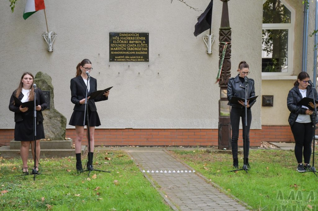 Október 6-án, a nemzeti gyásznapon a Martfűi Református templomkertben és a kollégiumban is ünnepi megemlékezést tartottunk. Hajnóczysaink a Szolnoki SZC Damjanich János Szakképző Iskola és Kollégium kollégistáival közösen ünnepi műsorral és koszorúzással tisztelegtek az aradi vértanúk emléke előtt. Fedák Borbála és Székely Zoé Beatrix (11.d) az 1848/1849-es szabadságharc utolsó napjainak tragikus eseményeire emlékezve olvasták fel hőseink utolsó mondatait, illetve szavalattal gazdagították a kegyeletteljes múltidézést. Közösen hajtottunk fejet a 13 tábornok előtt.