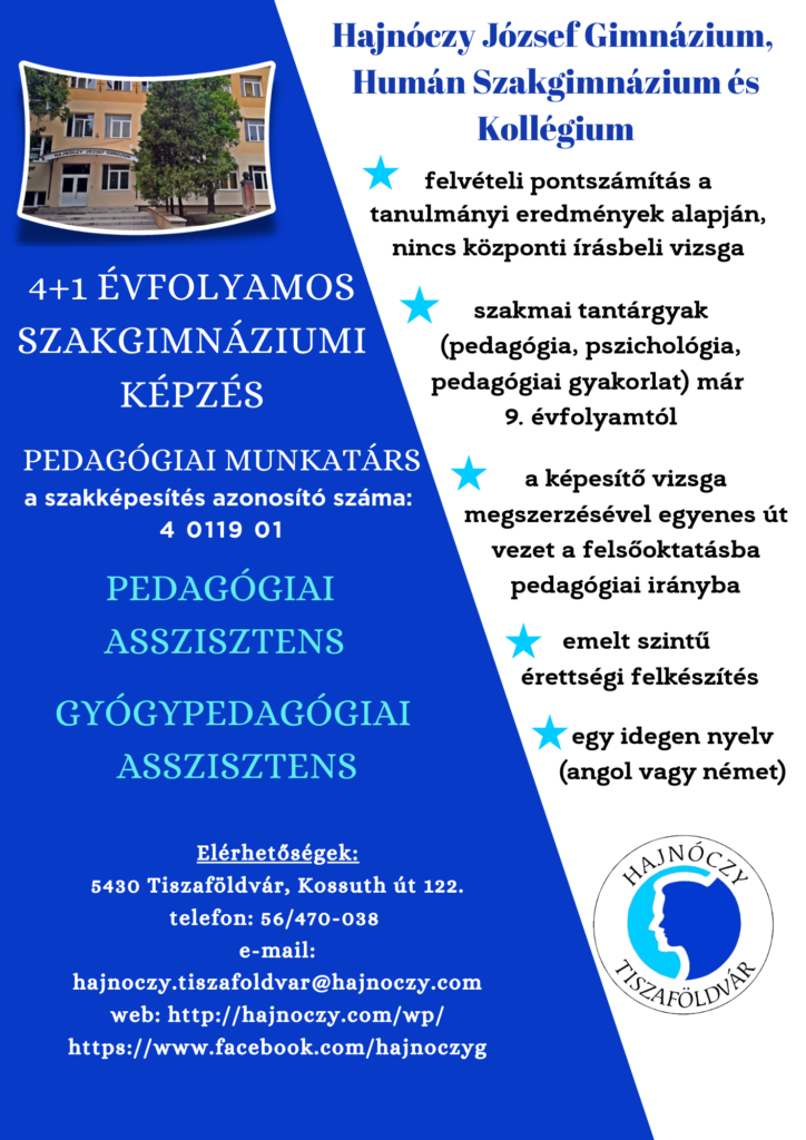 4+1 évfolyamos szakgimnáziumi képzés – pedagógiai munkatárs (a szakképesítés azonosító száma: